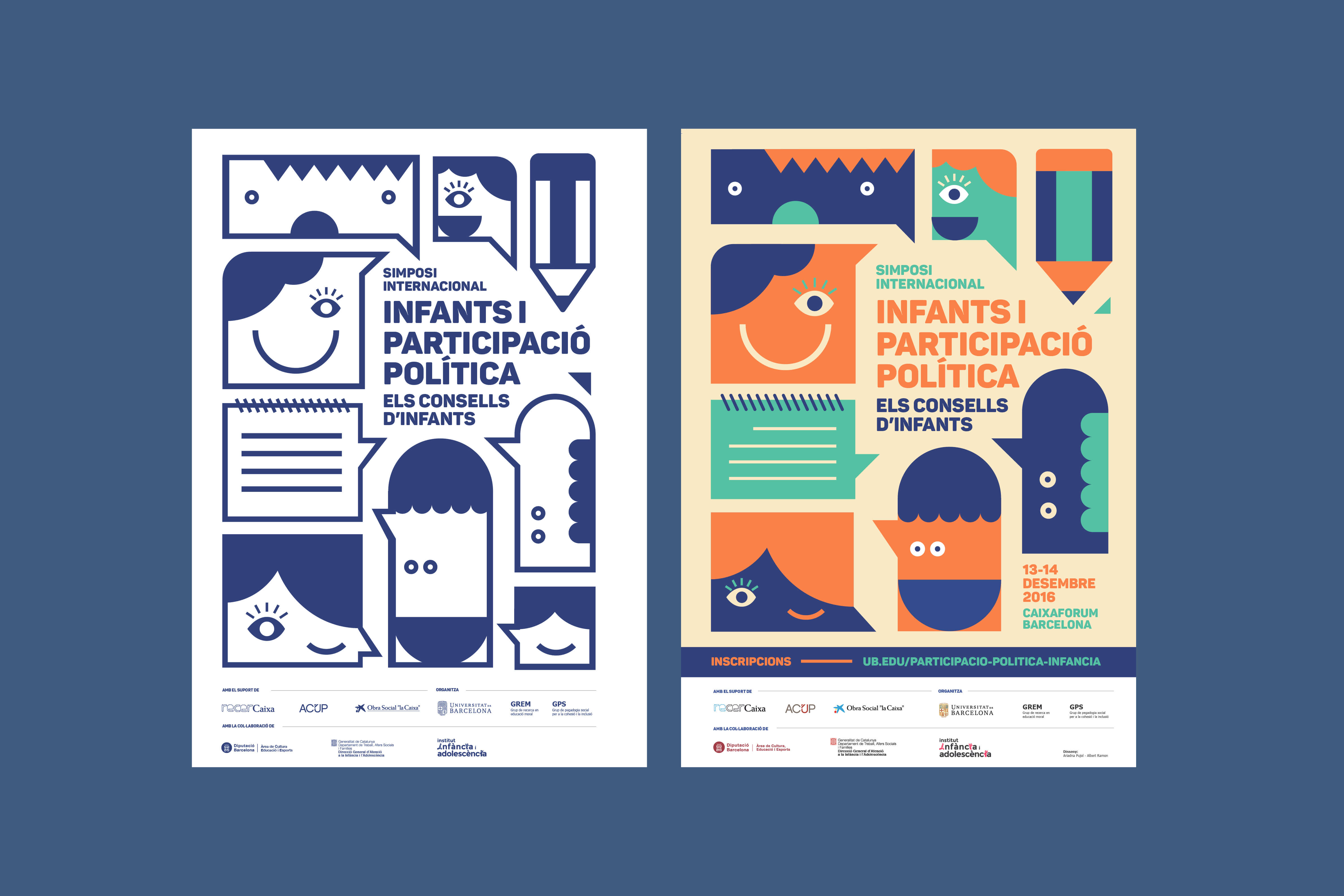 Imatge gràfica del Simposi Internacional d’Infants i Participació Política celebrat el desembre del 2016 al recinte Caixaforum de Barcelona i organitzat per la Universitat de Barcelona.